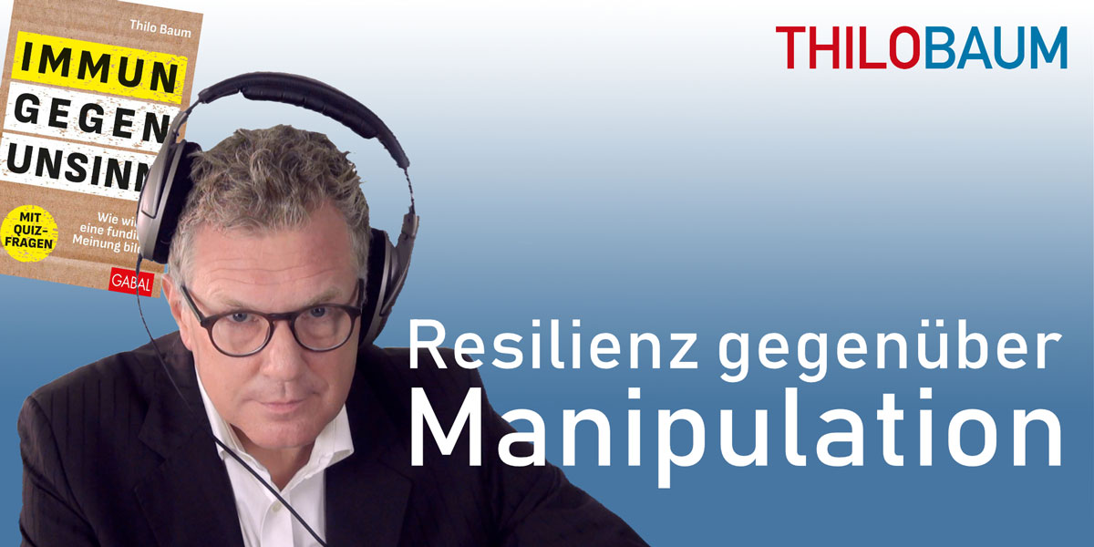 Wie werden wir resilient gegenüber Manipulation? Mit dieser Podcastfolge schließt Thilo Baum die kleine Serie zum Thema „Informationskompetenz“ ab, die er in Folge 292 begonnen hat. Abschließend hören Sie zehn Punkte, um die es letzten Endes geht, wenn wir uns gegenüber Manipulationsversuchen immun machen wollen. Wollen Sie das Thema für sich vertiefen, melden Sie sich bei Thilo Baum – es gibt wieder zwei Ausbildungsrunden, eine Ende November 2025 in Köln und eine Anfang Dezember 2025 in Garmisch.