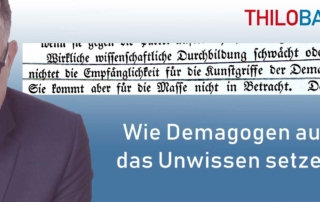 Demagogen lügen und verzerren die Realität, sie treten die Regeln des wissenschaftlichen Denkens mit Füßen. Ein Buch von 1905 – das „Lehrbuch der Demagogik“ von Rudolf Bartels – erklärt die [...]